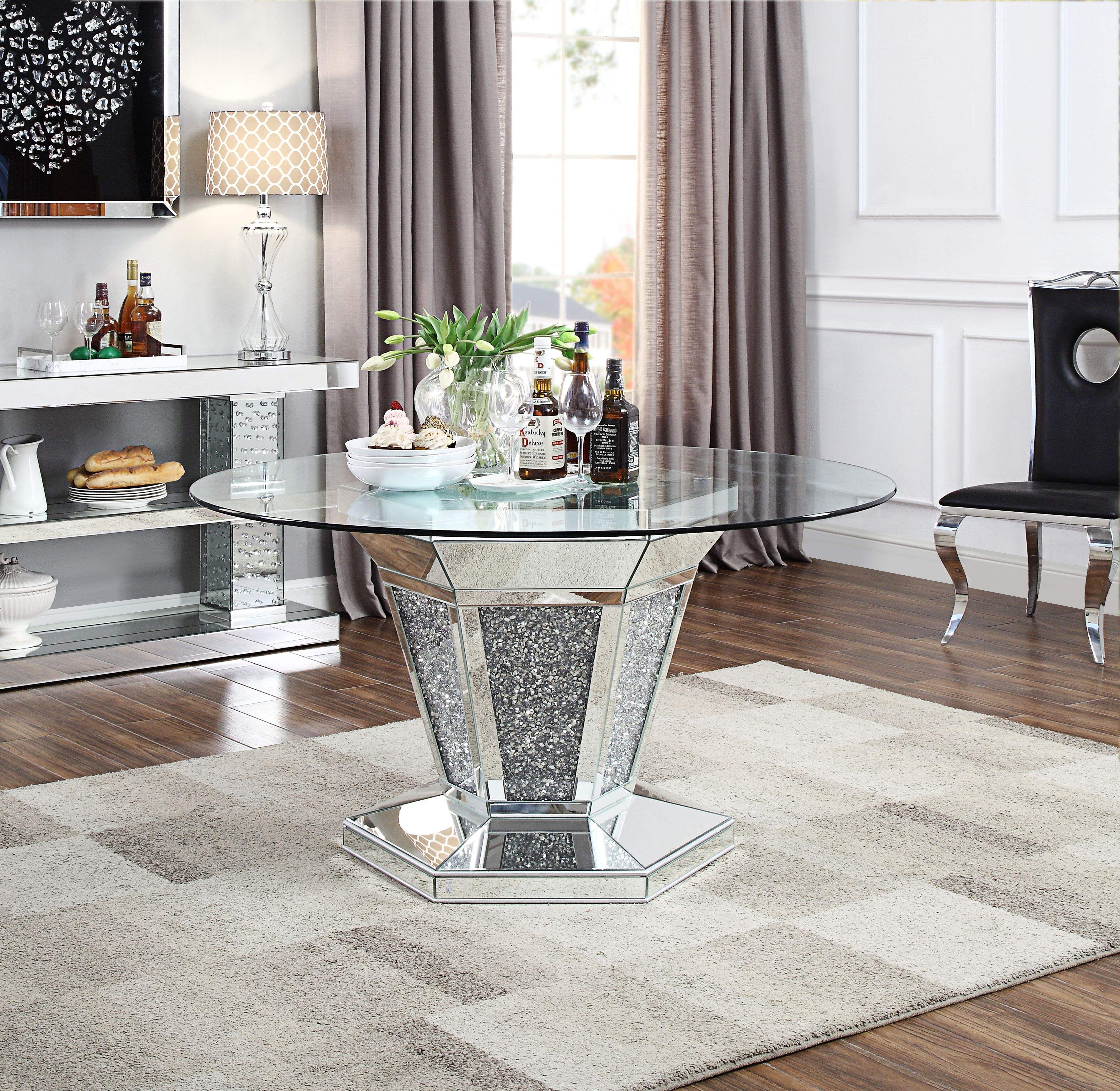 New Crushed Diamond Round Silver Dining Table With Toughened Glass Table Top