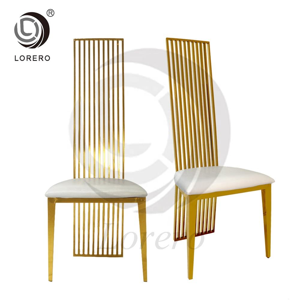Hotel Furniture Factory Golden Stainless Steel High Back Banquet Chair for Wedding