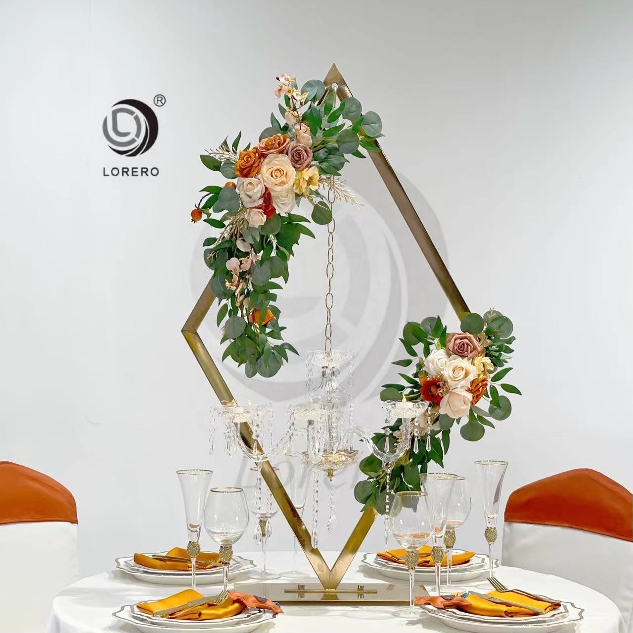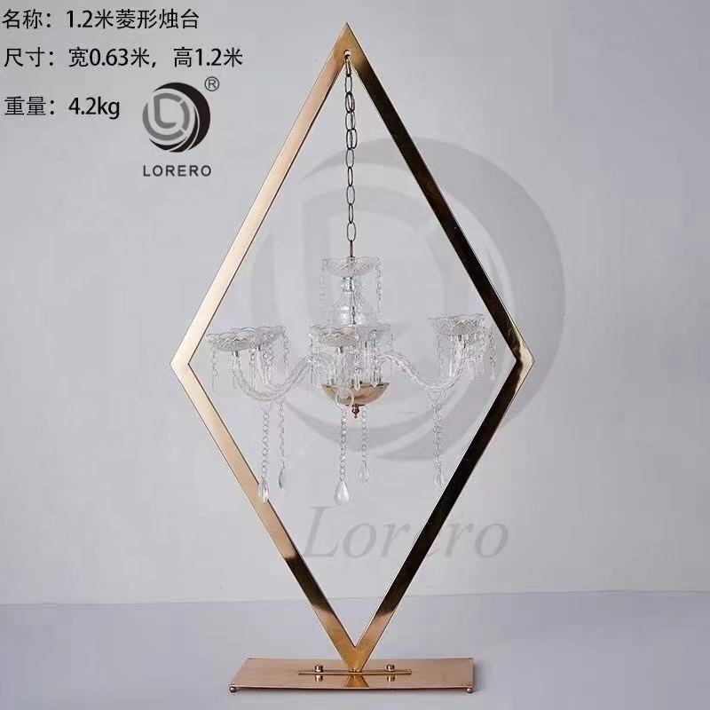 New Wedding Props Metal Candlesticks Diamond Frame Hanging Crystal Pendant Candlestick Wedding Main Table Set