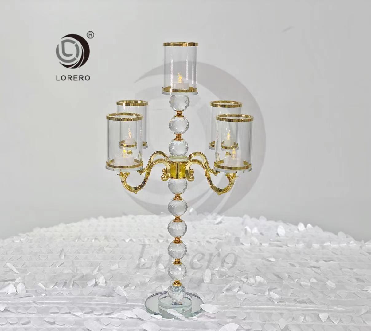 Wholesale Factory Cheap Wedding Decoration Table Crystal Candelabra Tall Gold Candlestick Glass Holders
